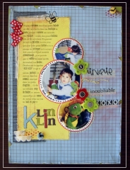 Puis une ‘tite page réalisée d’après le sketch d’août de Binka pour le forum Click et Scrap. J’ai voulu sortir de mon confort cette fois-ci, je crois que c’est bien le cas même si je n’en suis pas tout à fait satisfaite!!Mais je ne manquerai pas de la refaire dans un autre style!!!